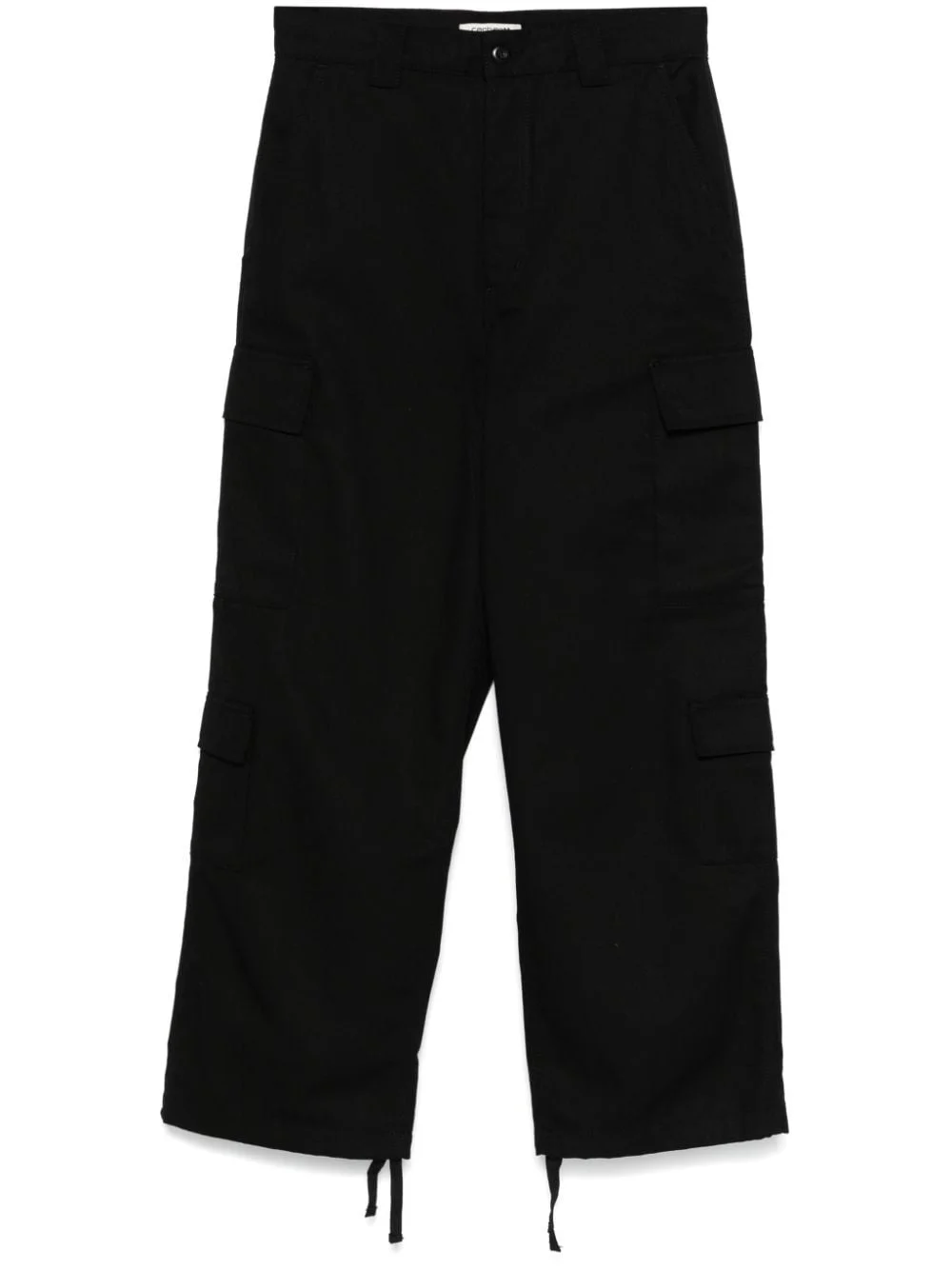 The Carhartt WIP Kingsley Pant has a silhouette inspired by cargo pants and is made from a medium-weight polyester-cotton twill. They have a wide, straight cut and can be individually adjusted at the leg openings. A woven square label rounds off the design. - Relaxed straight fit - Regular waist - Adjustable leg openings - Buttoned flap pockets on the legs and back - Zipper - Square label Article Number: I033772-89.01 Gender: Women Color: Black Rigid Material: 65% Cotton, 35% Polyester