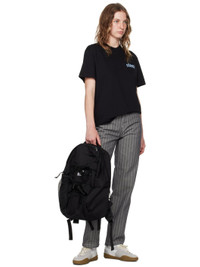 Water-repellent recycled polyester canvas backpack in black. · Padded carry handle · Adjustable padded shoulder straps · Adjustable press-release sternum strap · Zip pocket at top · Press-release board straps at face · Bungee-style drawstring and logo patch · Mesh and zip pocket at side · Press-release luggage strap at padded back face · Two-way zip closure · Coated canvas lining · H18" x W12" x D5.5" Supplier color: Black