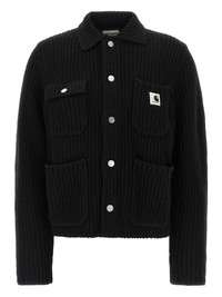 Michigan ribbed cardigan Highlights - Black - Ribbed knit - Snap button fastening - Front pockets - Logo patch Imported Composition Bio Acetate 75%, Wool 15%, Polyester 10% Washing instructions Read Manufacturer Guidelines