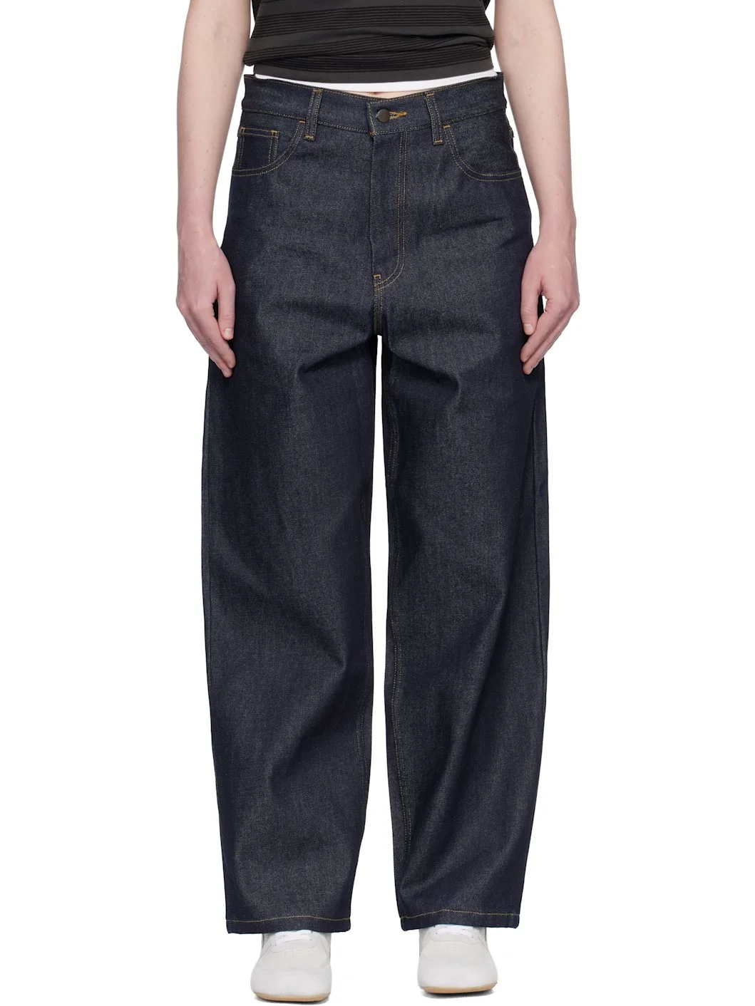 Heavyweight non-stretch denim jeans. · Loose-fit, straight-leg · Belt loops · Five-pocket styling · Zip fly · Logo patch at back pocket · Contrast stitching in tan Supplier color: Blue, Rigid 100% cotton. Made in Pakistan 261111F069002