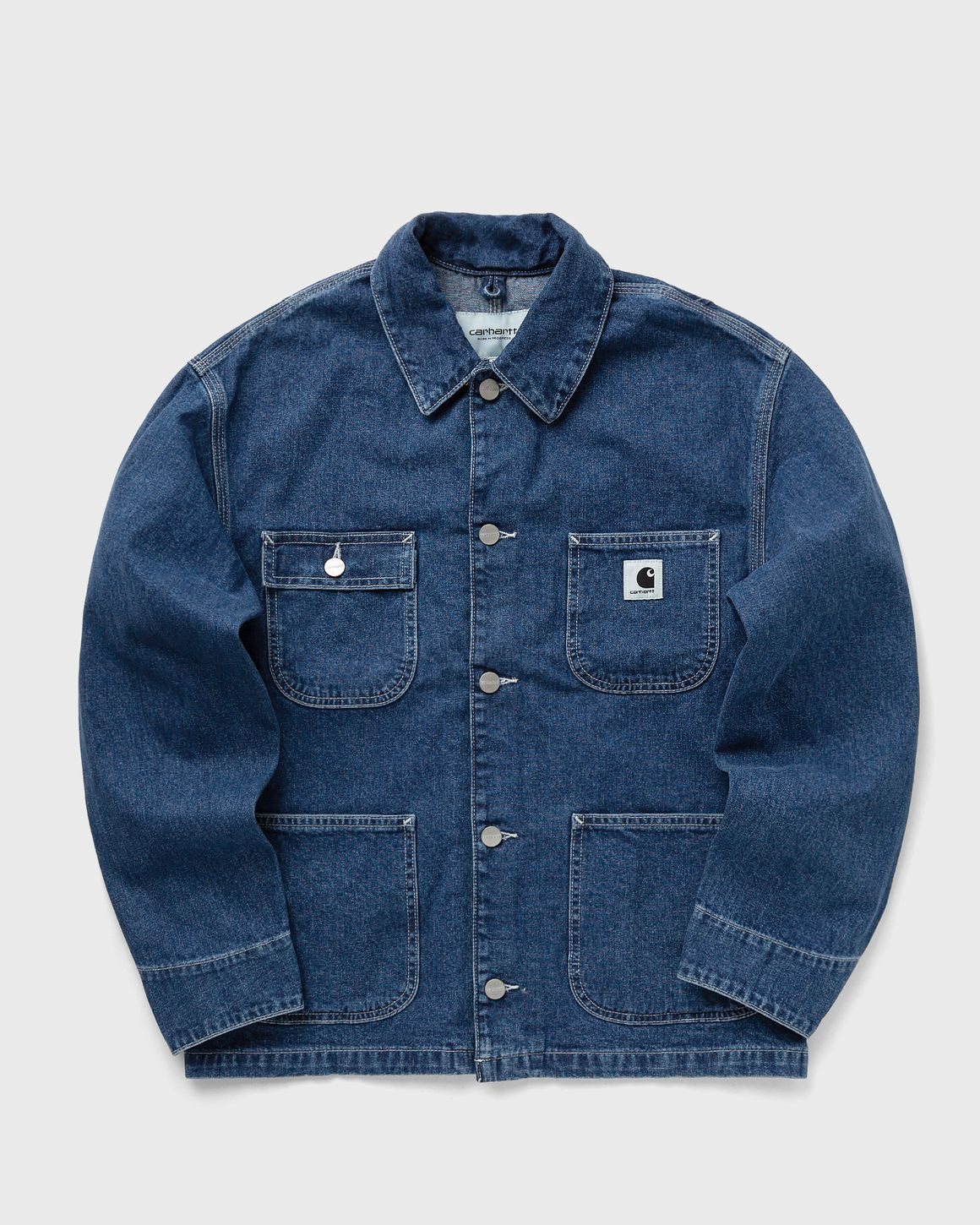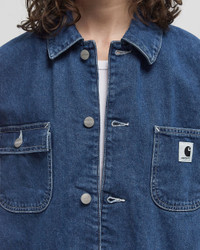 The Carhartt WIP OG Michigan Coat in the Original Loose Fit is made from 319 g Norco denim, a hard-wearing cotton fabric. The design of the unlined model is based on the classic chore jacket. Four patch pockets on the front give the jacket a casual utility look, while triple stitching makes it even more durable. A Square Label on the chest pocket rounds off the design. - Original loose fit - Triple seams - Adjustable cuffs - Square label Article Number: I031923-01.06 Gender: Women Color: Blue stone washed Material: 100% Cotton