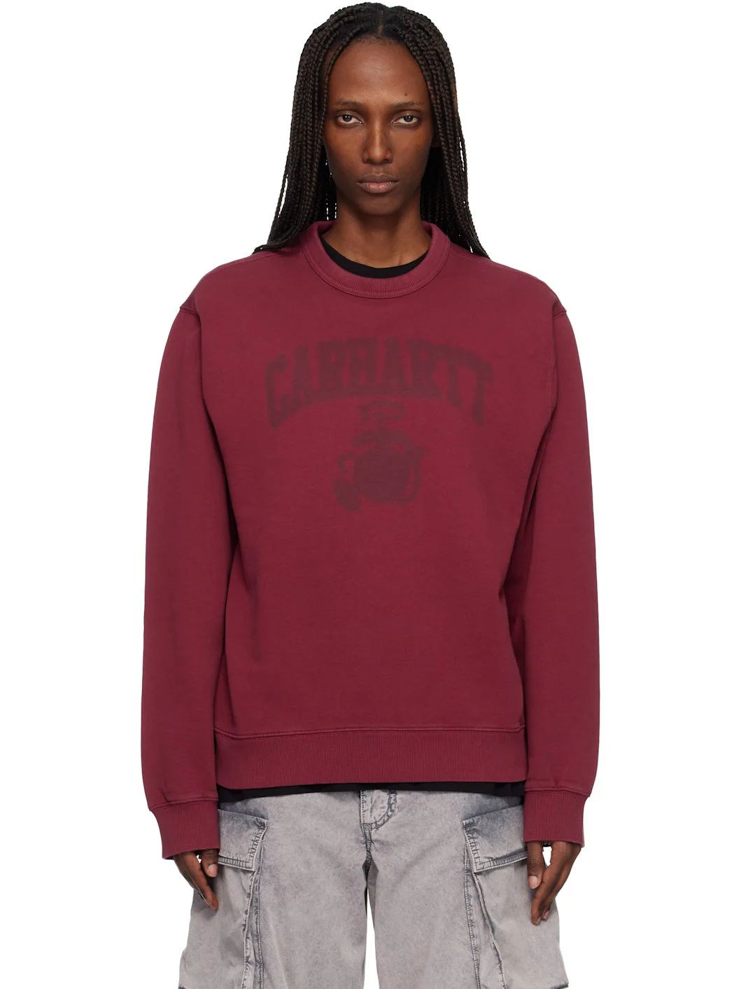 430 gsm cotton fleece sweatshirt. · Rib-knit crewneck, hem, and cuffs · Logo graphic printed at front · Dropped shoulders Supplier color: Marsala Body: 100% cotton. Trim: 96% cotton, 4% elastane. Made in Bangladesh 261111F098008