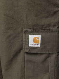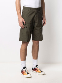 regular-fit cargo shorts Highlights - Olive green - Cotton - Logo patch to the side - Front button fastening - Belt loops - Two side flap pockets - Two rear flap pockets Imported Composition Lining: Polyester 52%, Cotton 48% Outer: Cotton 100% Washing instructions Machine Wash