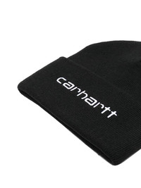Script logo-embroidered beanie black/white knitted construction embroidered logo to the front turn-up brim straight hem Made in Italy Composition Polyester 60%, Acrylic 40% Washing instructions Hand Wash