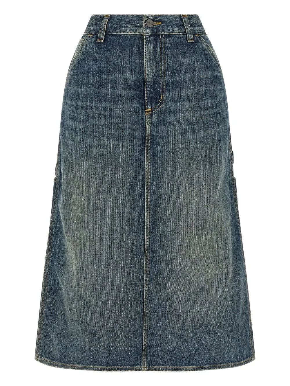 contrast-stitching denim skirt Highlights - Blue - Cotton - Contrast stitching - Side pockets - Logo patch - Front zip and button closure Imported Composition Cotton 100% Washing instructions Read Manufacturer Guidelines