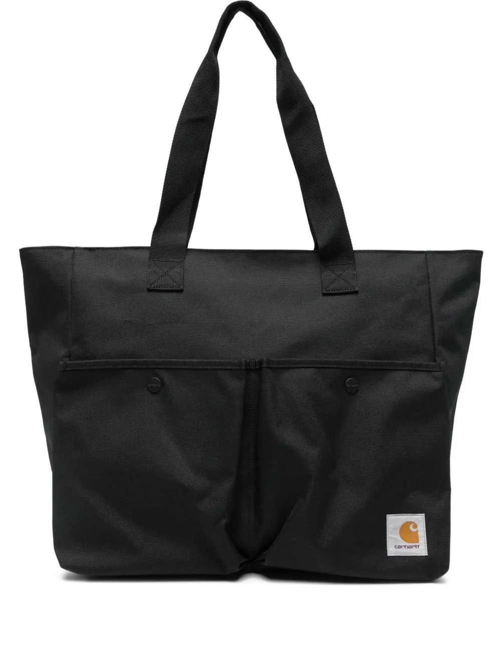slip-pocket tote bag Highlights - Black - External pockets - Top handles - Zip fastening - Logo patch - Rectangular shape Imported Composition Outer: Recycled Polyester 100% SIZE & FIT Measurement DEPTH 7.67 in(19.5 cm) HEIGHT 13.38 in(34 cm) WIDTH 15.35 in(39 cm)