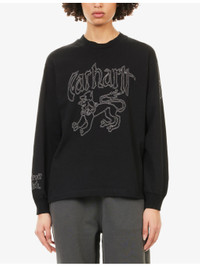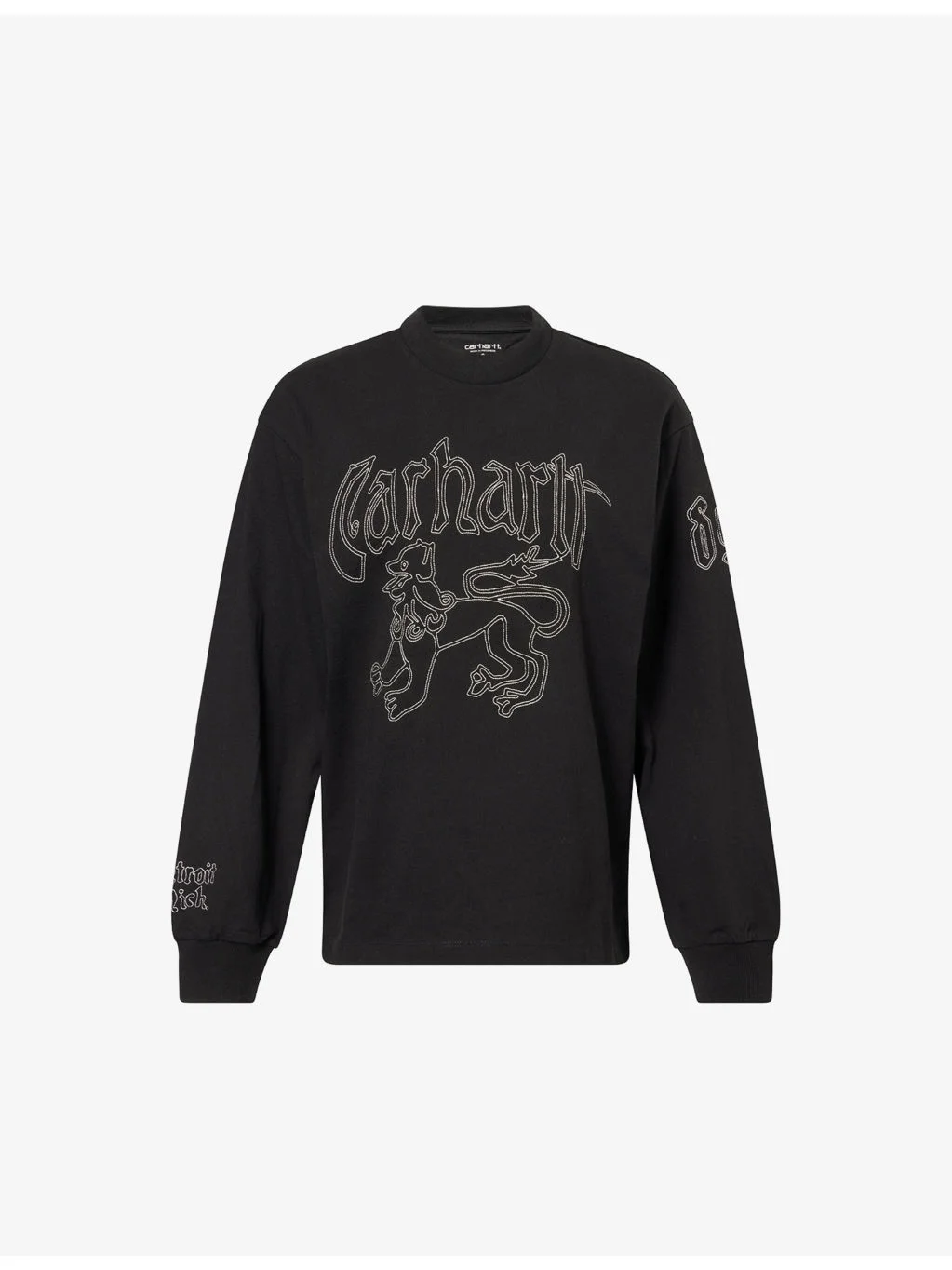 PRODUCT DETAILS - Carhartt WIP cotton t-shirt - 100% cotton - Relaxed fit, round neck, long sleeves, embroidered motifs and logo at front, embroidered motif at sleeve, ribbed trims - Machine wash cold - True to size - Model is 5ft 10in/1.78m and wears a size small - Lightweight, slight stretch Ref: R04574794