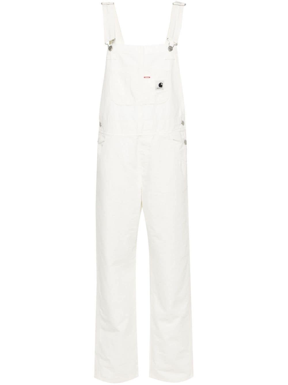 straight-leg canvas dungarees Highlights - White - Cotton - Canvas - Logo patch at the chest - Logo patch to the rear - Logo-embossed buttons - Square neck - Two adjustable detachable shoulder straps - Two chest patch pockets - Side button fastening - Two side slash pockets - Two rear patch pockets - Straight leg Imported Composition Outer: Cotton 100% Lining: Polyester 65%, Cotton 35%