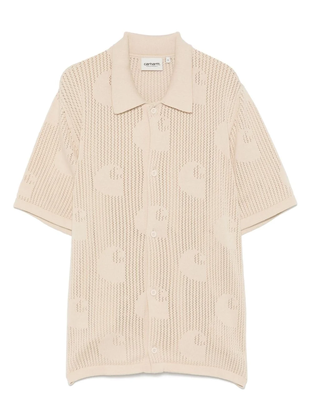 Temple shirt Highlights - Sand beige - Front button fastening - Ribbed cuffs and hem - Jacquard logo motif - Polo collar Imported Composition Cotton 100%