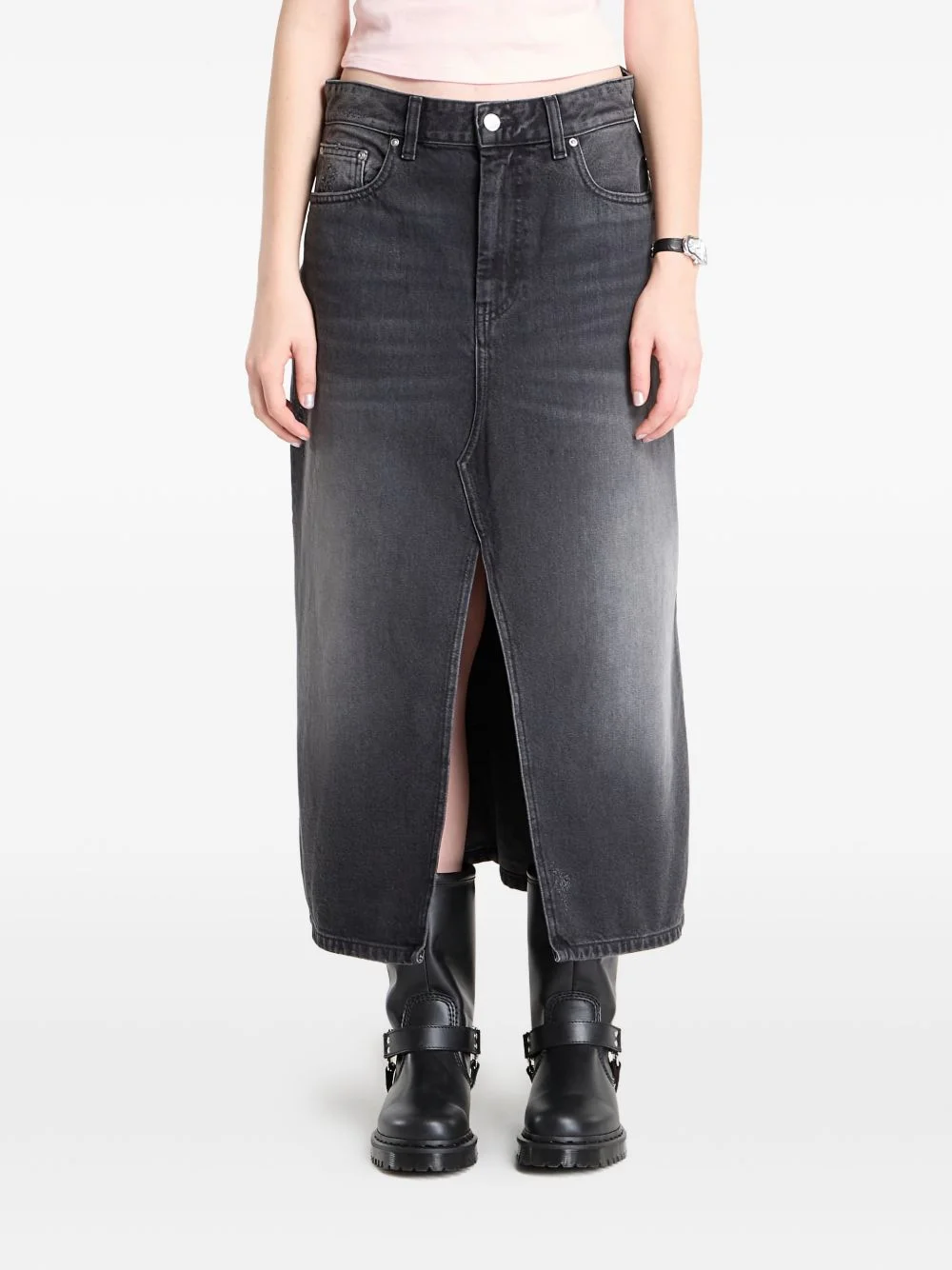 W' Brandon slit straight skirt Highlights - Grey - Front slit - Back patch pocket - Regular fit - Button closure - Five pockets Imported Composition Cotton 100% Washing instructions Machine Wash