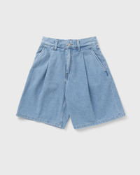 The loose fit Carhartt WIP Alta shorts are made from a heavy cotton denim and have a lighter look thanks to stone bleaching. The shorts feature pleats and a woven square label. - Loose fit, high waist - Pleats - Saddle stitching - Two side pockets, two back pockets - Zipper - Square label Article Number: I033345-01.12 Gender: Women Color: Blue Material: 100% Cotton