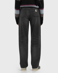 The Carhartt WIP Arin Pant has a 5-pocket design and is made from heavy cotton denim. It has a regular tapered fit. Bar tacks and rivets in high-wear areas provide additional durability. A woven square label completes the design. - 100% cotton (Fairfield denim, organic) - Tapered fit, regular rise - Saddle stitching - Bar tacks or rivets in high-wear areas - Zipper fly - Square label Article number: I035881-89.4L Gender: women Color: black Material: 100% Cotton