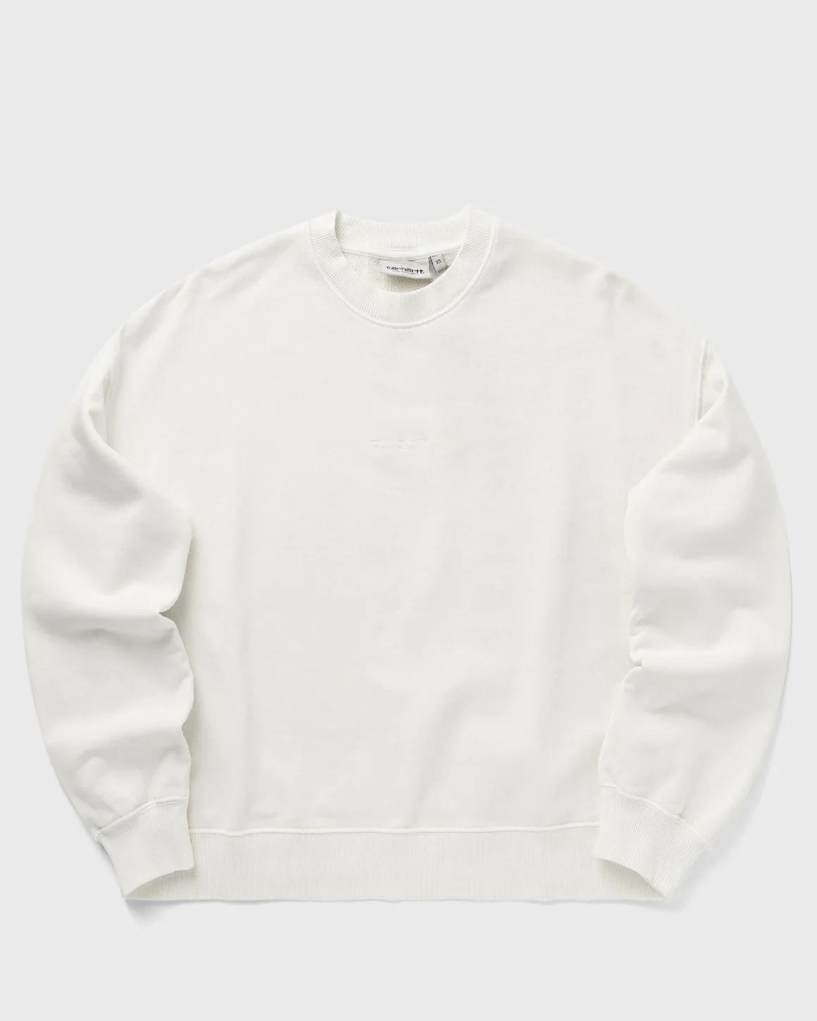 The Carhartt WIP Benton sweatshirt has a boxy, loose fit and is made from a cotton jersey with loopback construction. The style has been piece-dyed for a softer feel and a more complex colorway. An embroidered script logo on the front rounds off the design. - Boxy loose fit - Piece-dyed - Embroidered script logo Article Number: I034511-D6.GD Gender: Women Color: WAX GARMENT DYED Material: 100% Cotton