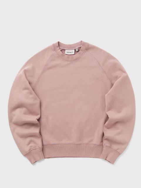 The Carhartt WIP Hudson sweatshirt is made from a heavyweight, unbrushed cotton jersey with a loopback construction. The style has a balloon fit with a slightly wider, boxy cut, dropped shoulders and ribbed cuffs. A chalk wash gives the style a sun-bleached effect and color differences in the details. A woven square label rounds off the design. - Round neckline - Ribbed cuffs and hem - Balloon fit - Square label Article Number: I035136-2ZU.5F Gender: Women Color: SAGUARO Material: 100% Cotton
