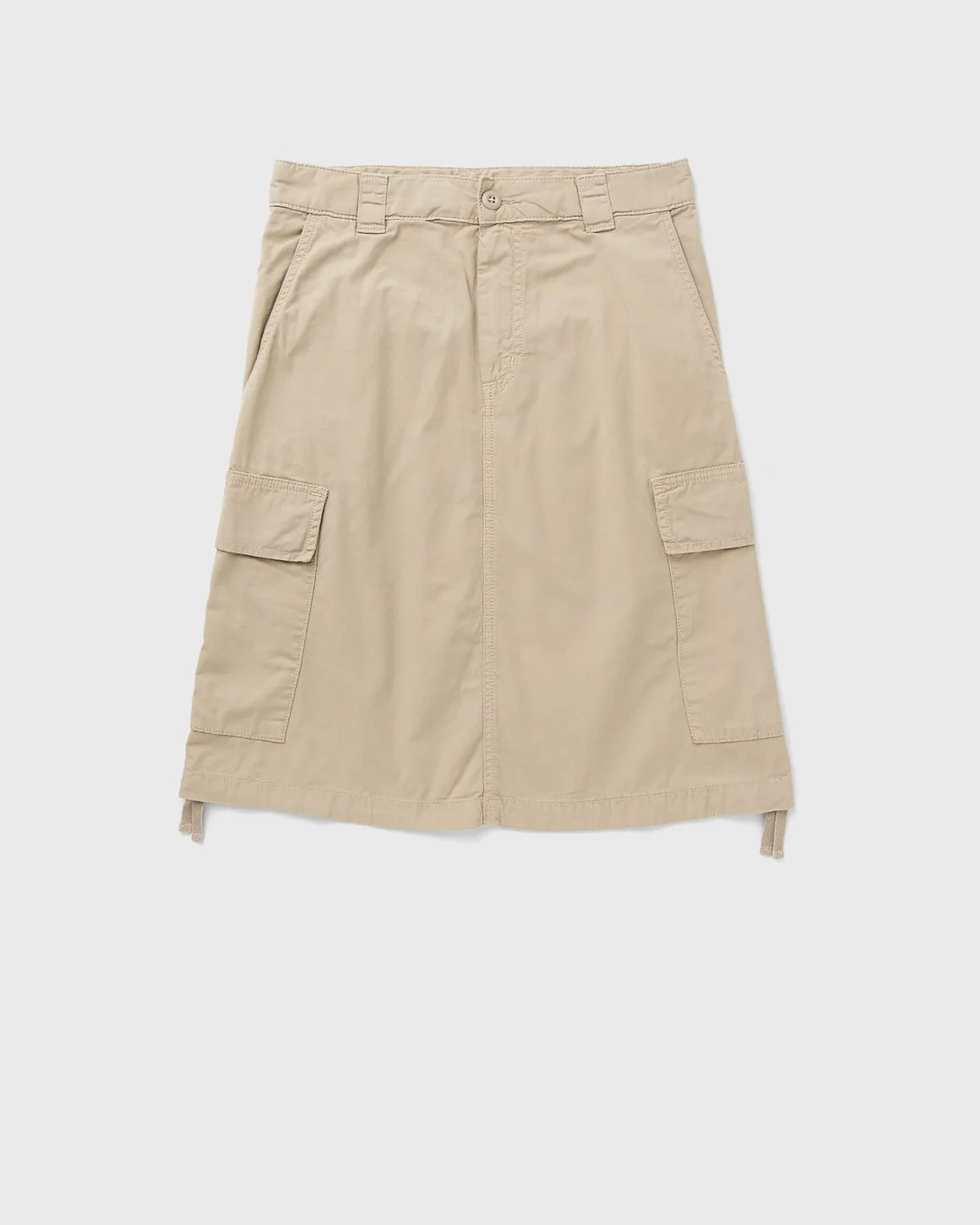 The Carhartt WIP Kingston Skirt updates the silhouette of classic cargo pants and is made from a mid-weight cotton twill. The style can be adjusted at the waistband and hem and has been piece-dyed for a softer feel and complex coloring. The skirt features two front pockets, two cargo pockets on the sides and two back pockets. A woven square label rounds off the design. - Regular waistband height - Adjustable waistband and hem - Front, side and back pockets - Bar-tacked seams in high-wear areas - Script logo on the inside of the waistband - Zipper - Square label Article Number: I035579-G1.GD Gender: Women Color: Wall Material: 100% Cotton