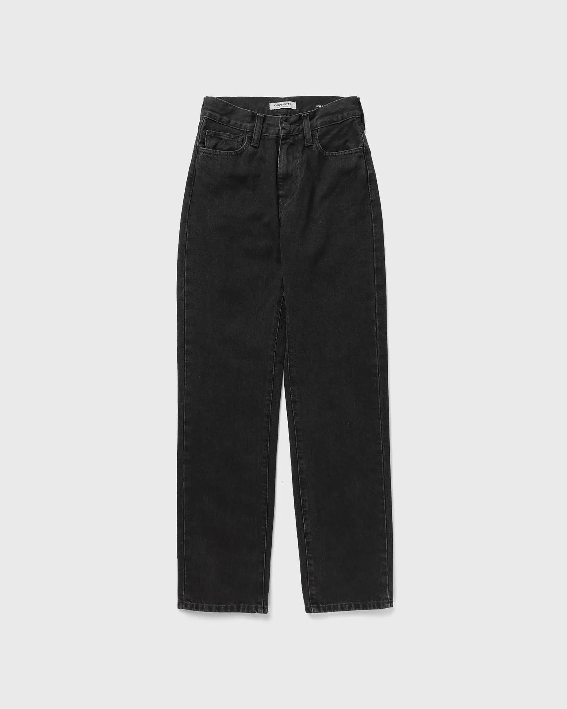 The straight cut Carhartt WIP Noxon Pant is made of a heavy denim and has a high waistband. It’s provided with a saddle seam on the back and a Square label made of woven fabric on the back pocket. Article Number: I031920-89.06 Gender: Women Color: BLACK STONE WASHED Material: 100% Cotton