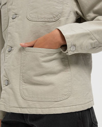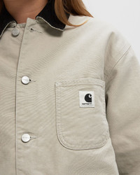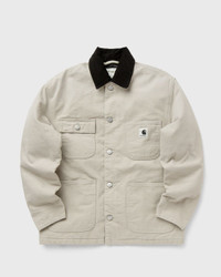 The Carhartt WIP OG Michigan Coat is made from heavy Dearborn canvas with quilted lining. The style is inspired by the silhouette of a classic chore coat and features an OG loose fit. The style features a cord collar, patch pockets on the front, and triple stitching for added durability. A woven square label completes the design. - Original loose fit - Quilted lining - Inside chest pocket - Triple stitching - Cord collar - Buttons with logos - Adjustable cuffs - Square label This item is partly made of certified, recycled and sustainable materials, reducing the global amount of waste and conserving primary raw materials. Discover a wide range of sustainable items now at BSTN! Article Number: I035671-2NQ.4O Gender: Women Color: FLEUR DE SEL / BLACK Material: 100% Cotton