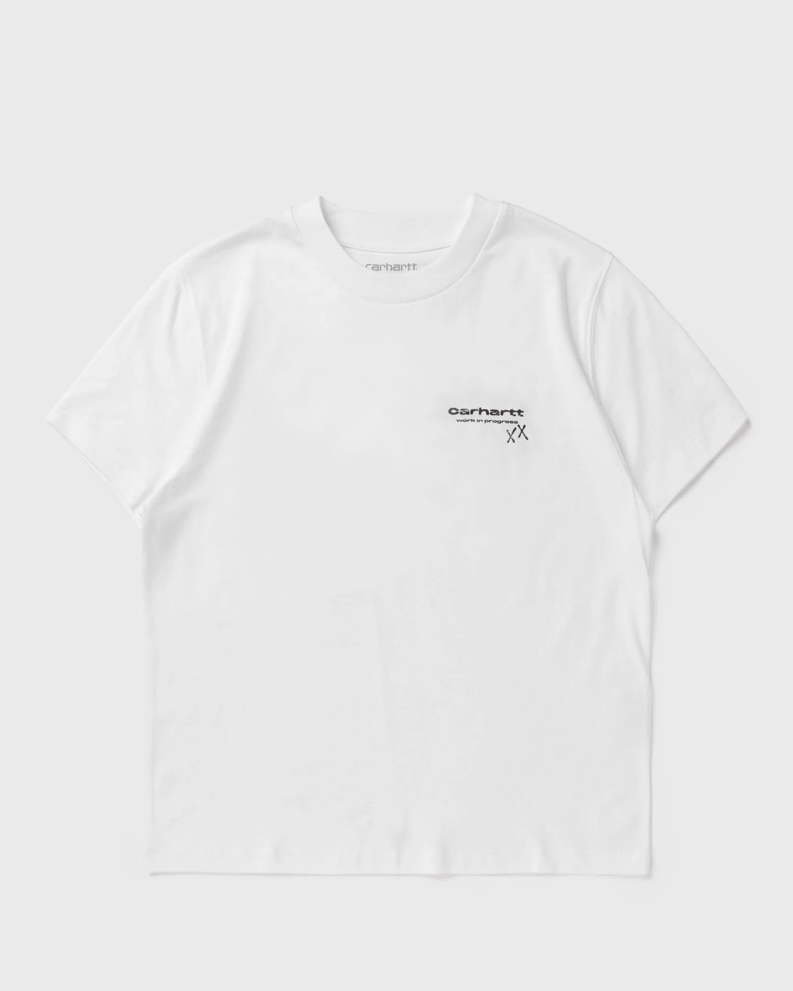 The Carhartt WIP S/S Garble T-shirt has a slim fit and is made from medium-weight organic cotton jersey. It features graphic prints on the front and back. - Round neckline - Short sleeves - Graphic print Article number: I036031-02.XX Gender: women Color: white Material: Full: 100% Cotton