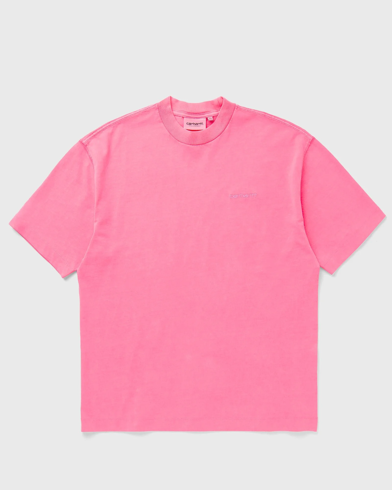 The Carhartt WIP S/S Lumo T-shirt is made from a medium-weight cotton jersey and has a boyfriend fit with a slightly looser cut and dropped shoulders. An embroidered script logo on the chest rounds off the design. - Boyfriend fit - Short sleeves - Embroidered script logo Article number: I034377-2M6.GD Gender: women Color: LUMO PINK GARMENT DYED Material: 100% Cotton