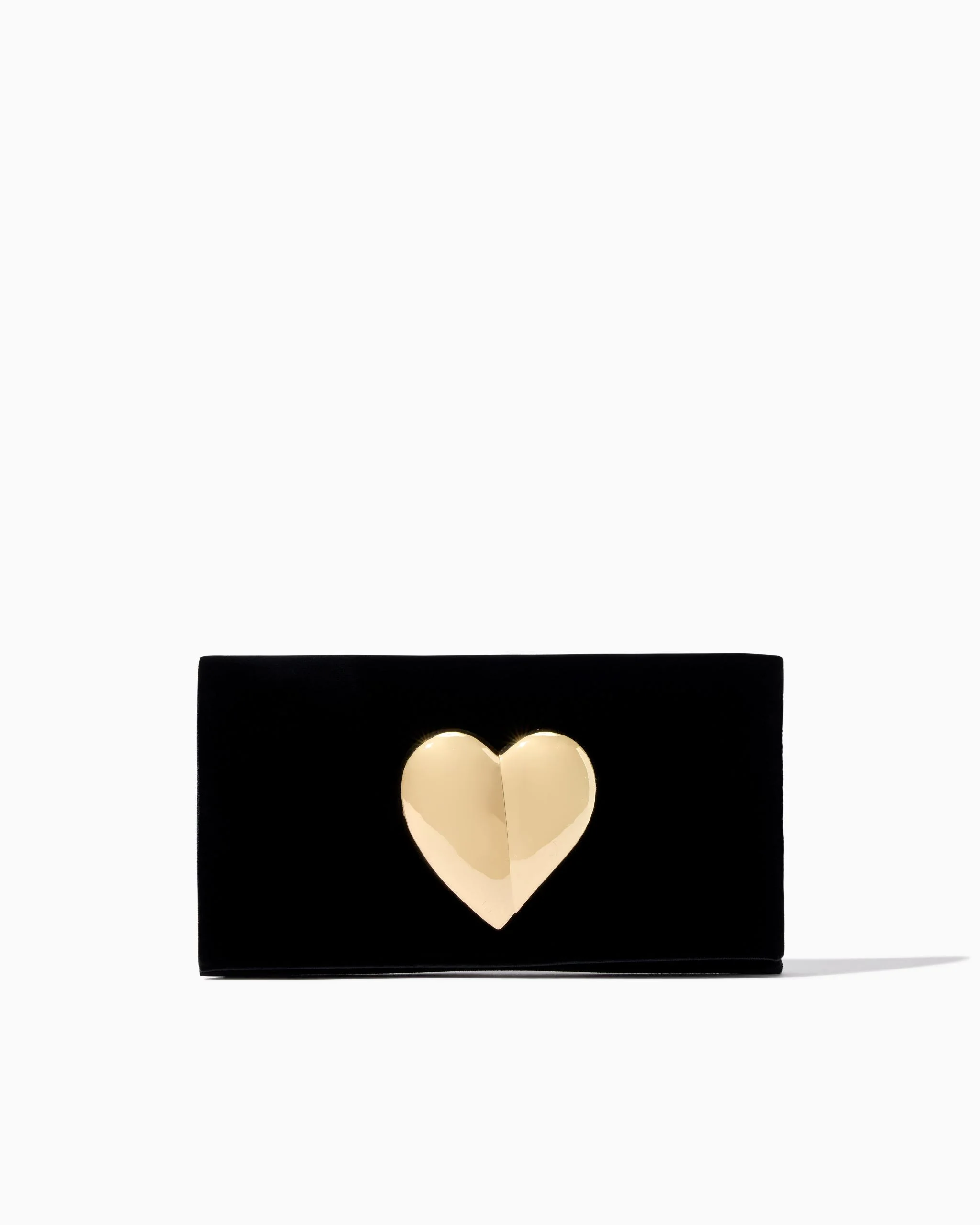 A large goldtone heart brings a playful touch to this Marquise clutch. COMPOSITION & CARE 65% Rayon, 32% Cupro, 3% Polyurethane Washing Instructions Spot Clean SKU F2431E601STV