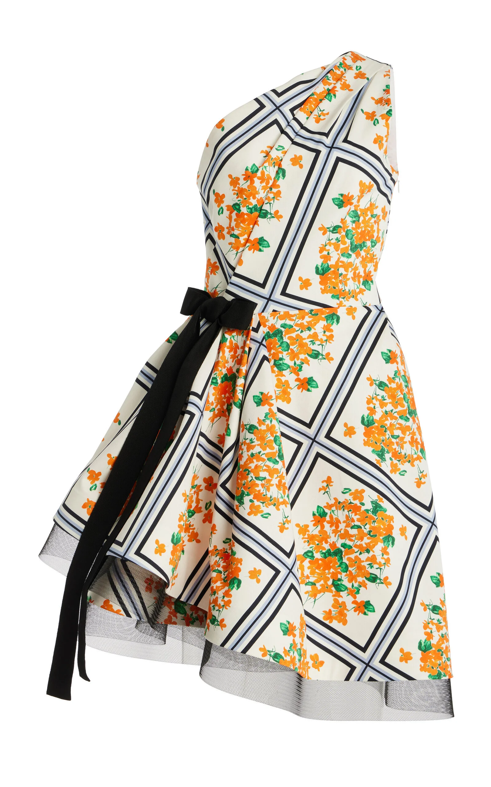 PRODUCT DETAILS - One-shoulder, bow detail, fit to flare, mini hem - Concealed zip fastening - Unlined - Composition: Crepe - Color: White Multi - Dry clean only - Pre-Fall '25