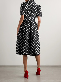 Belted Pleated Polka-dot Silk-gazar Midi Shirt Dress