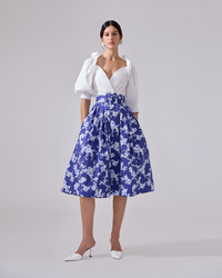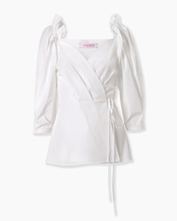 Ruffled shoulders frame this wrap-front shirt, crafted from stretch-cotton with a plunging neckline and puffed sleeves. Elasticized shoulders Tie closure at the side SKU E2511N201SCT SIZE & FIT Regular fit with voluminous sleeves Midweight stretchy cotton Model is 178cm/ 5’10” and is wearing a US 2 Bust: 30" Waist: 23" Hips: 35" COMPOSITION & CARE 97% Cotton, 3% Polyutherane Washing Instructions Dry Clean Only Made in Italy