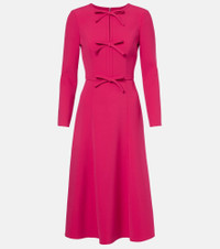 A permanent fixture on the red carpet, Carolina Herrera is credited with the most elegant eveningwear. This midi dress is made from fluid crepe and boasts a flared skirt and a bow-detailed front. Product Details - Material: 92% polyester, 8% polyurethane - Care instructions: dry clean - Made in the USA - Designer color name: Claret - Item color: pink - Lining: 99% polyester, 1% elastane - Closure: concealed zipped back - Item number: P01103744 Size & Fit - True to size - Cinched waist - Non-stretchy fabric - The model seen in the picture is 178cm-5'10" and wearing a size US 4