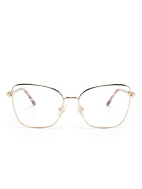 butterfly-frame glasses Highlights - Gold-tone - Nose pads - Curved tips - These glasses come with a protective case. - All glasses from farfetch are sold as non-prescription frames. Made in Italy Composition Acetate 100%, Metal 100% SIZE & FIT Measurement Arm Length 5.51 in(14 cm) Bridge Width 0.66 in(1.7 cm) Lens Diameter 2.2 in(5.6 cm) Total Width 5.47 in(13.9 cm)
