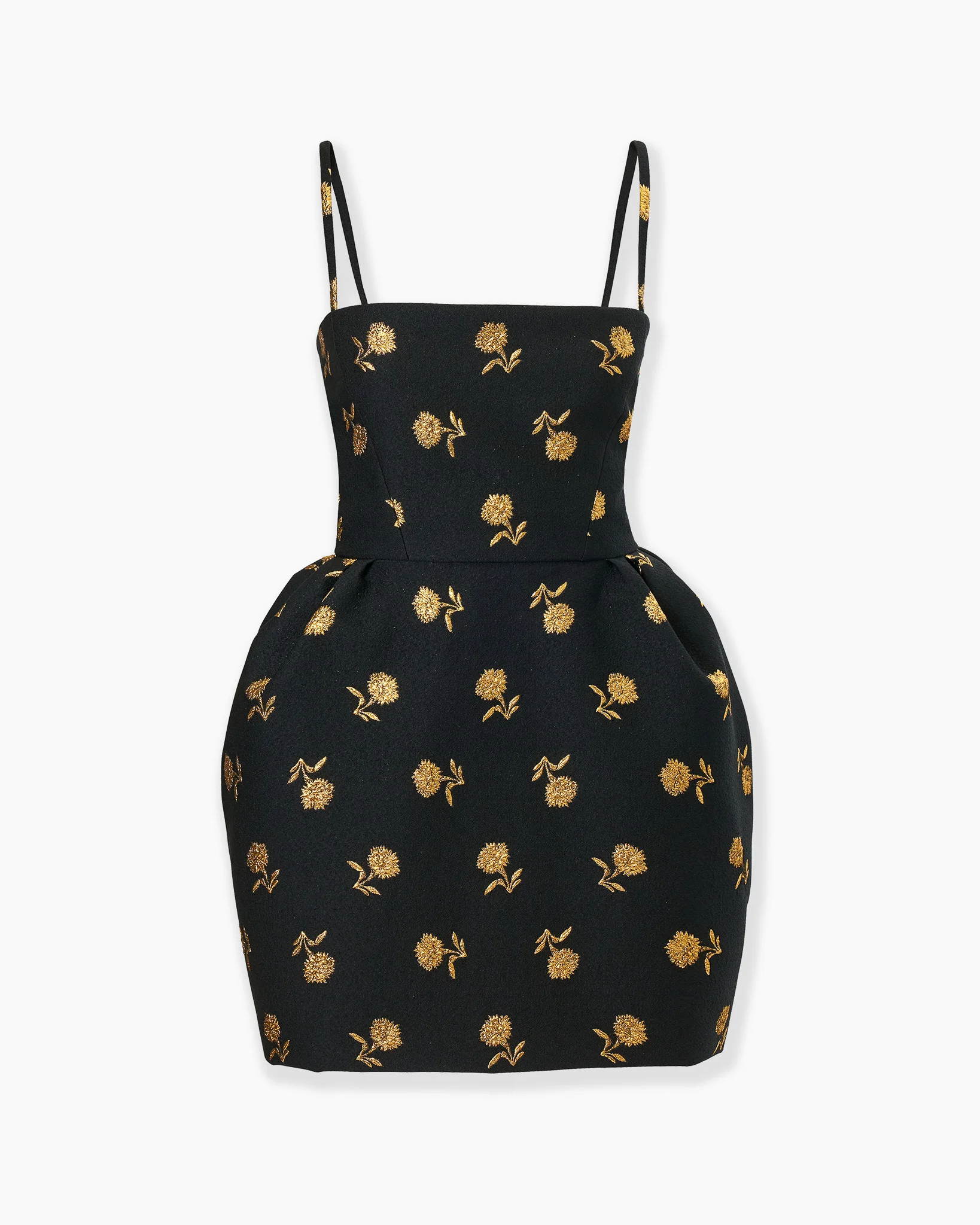 This jacquard mini dress is designed with a pleated, bell-shaped skirt that accentuates the cinched waist. Its golden carnation motifs pay homage to Madrid’s signature flower. Runway style Thin shoulder straps SKU S2611N544CAJ SIZE & FIT Relaxed, slightly oversized fit, mini length Midweight carnation lurex jacquard Model is 175cm/ 5’7” and is wearing a US 2 Bust: 30.5" Waist: 24" Hips: 34.5" COMPOSITION & CARE 48% Ribbed Lycra 37% Polyester 10% Mesh 5% Nylon Washing Instructions Dry Clean Only Made in United States of America