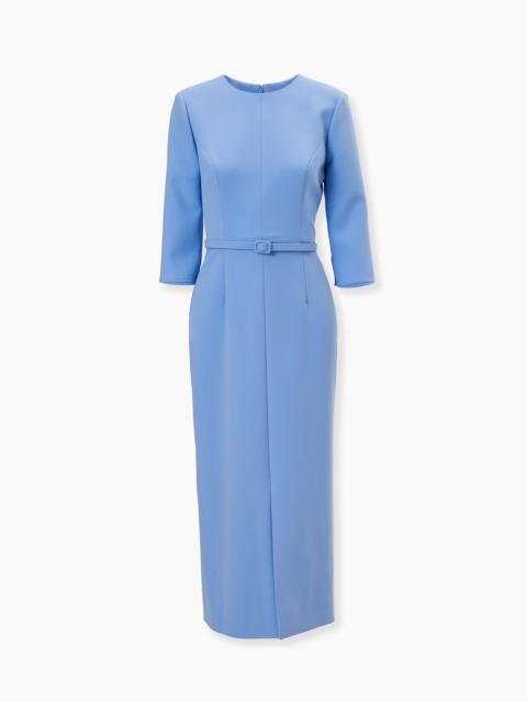 Cut from pinstripe flannel, this figure-hugging midi dress is accented with a narrow belt. Pair with sleek gold accessories for a sophisticated finish. Front slit Concealed zip closure at the back SKU F2511N557PFN SIZE & FIT Close fit, midi length Midweight stretch-flannel Model is 179cm/ 5’11” and is wearing a US 2 Bust: 33" Waist: 23" Hips: 34.5" COMPOSITION & CARE 46% Reinforced Woven, 36% Linen/Viscose Blend, 17% Recycled Nylon, 1% Elastane Washing Instructions Dry Clean Only Made in Italy