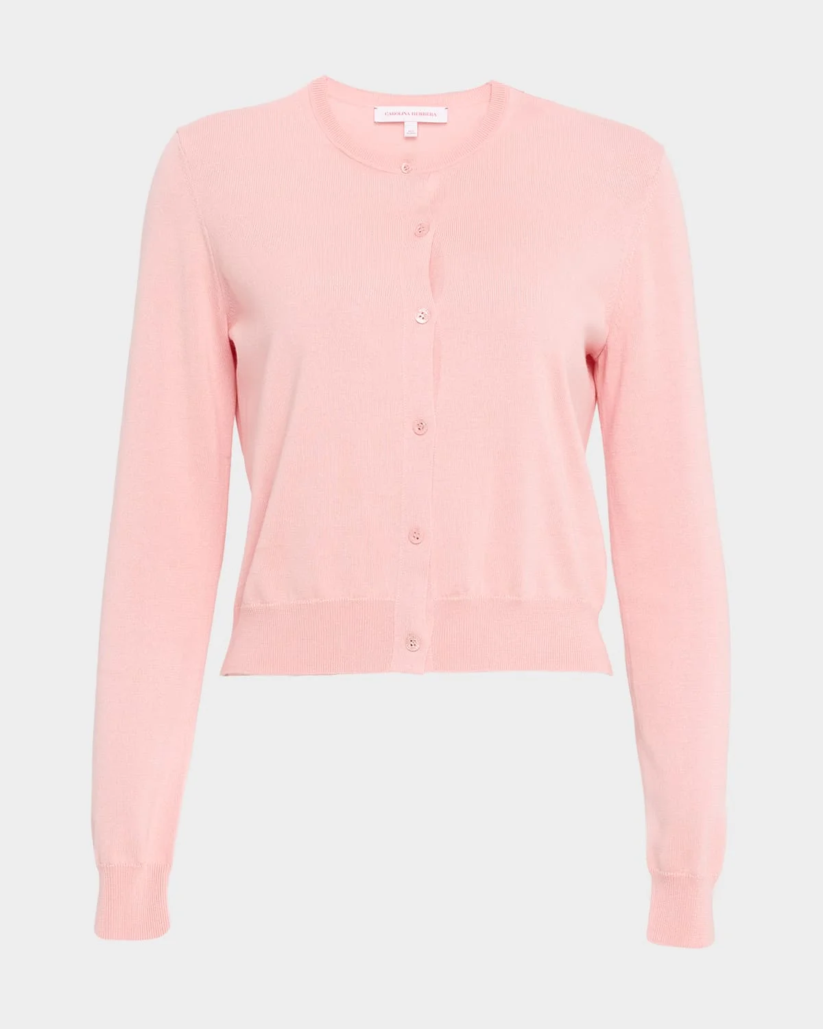 - Carolina Herrera cardigan in a silk-blend - Crew neckline; button front - Long sleeves - Relaxed fit - Ribbed cuffs and hem - Silk/cotton - Dry clean - Imported