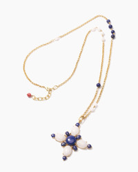 For Resort 2025 we collaborated with Olympia Babylonia to create a capsule of handmade jewelry in striking shapes and dazzling tones. This cross necklace features contrasting stones set on 24k golden brass. SKU OLY36N400GEM COMPOSITION & CARE Lapis-lazuli and white quartz cross on 24k golden brass with combined chain with lapislasuli and white quartz pearls Washing Instructions Clean with a soft, dry cloth