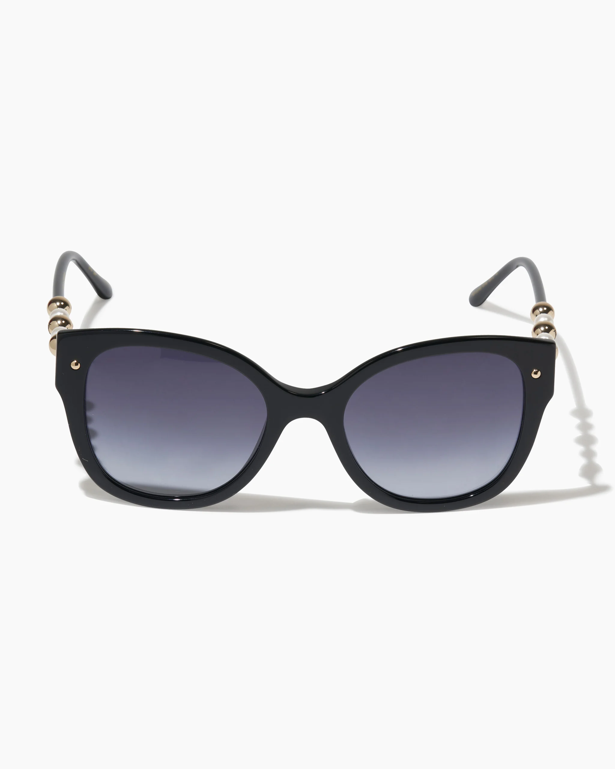 Gold and pearl-toned beading at the temples gives a luxe finish to these chic cat-eye frames, crafted from acetate with iconic gold-tone studs. Rounded tips 100% UV protection SKU S2556N445SUN SIZE & FIT 55mm lens width 21mm bridge width 140mm temple width COMPOSITION & CARE Metal / Acetate Washing Instructions Clean with a soft, dry cloth Made in United States of America