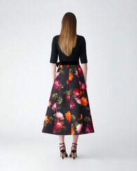 Bold chrysanthemums inspired by Flemish oil paintings bloom across the faille skirt of this dress, detailed with a black crepe bodice and a velvet ribbon belt. SKU C2611N508CYF SIZE & FIT Close-fitting bodice, voluminous skirt Midweight faille Model is 178cm/ 5’10” and is wearing a US 2 Bust: 32" Waist: 23.5" Hips: 34.5" COMPOSITION & CARE 100% Polyester Washing Instructions Dry Clean Only Made in United States of America