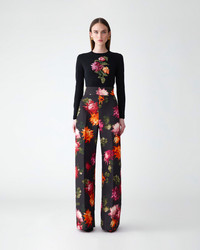 These elegant high-rise pants are tailored from faille with a floor-sweeping, wide-leg silhouette. They are covered in a bold chrysanthemum print inspired by Flemish oil paintings. Concealed zip fastening at the side SKU C2611N411CYF SIZE & FIT High-rise, wide-leg fit Midweight faille Model is 178cm/ 5’10” and is wearing a US 2 Bust: 32" Waist: 23.5" Hips: 34.5" COMPOSITION & CARE 100% Polyester Washing Instructions Dry Clean Only Made in United States Of America