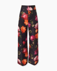 Chrysanthemum-Print Wide-Leg Diane Pants