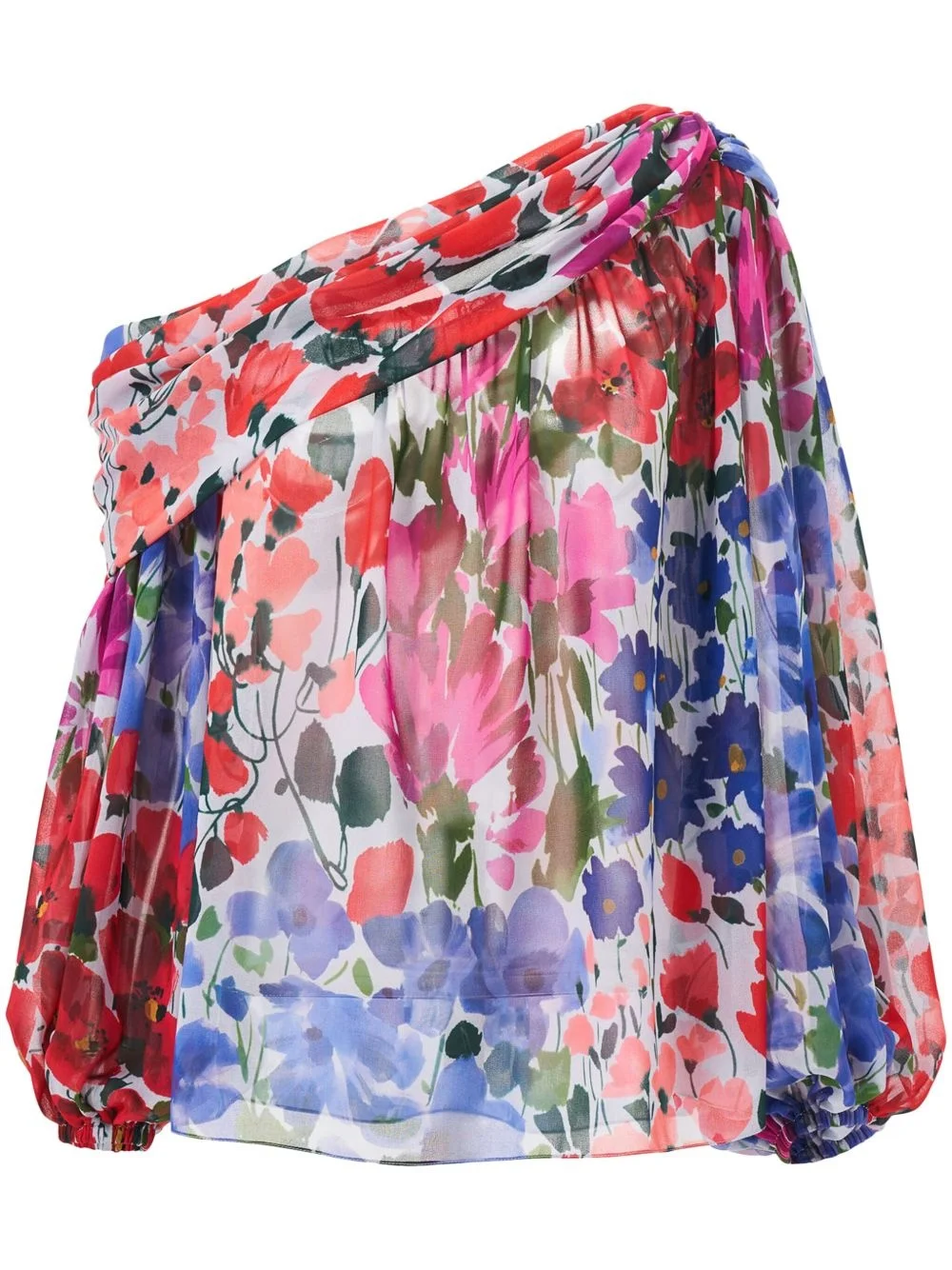 Jardin-print one-shoulder top Highlights - Multicolour - Asymmetric neck - Balloon sleeves - Elasticated cuffs Made in United States Composition Polyester 100%