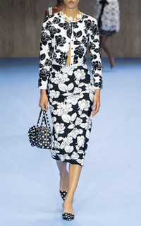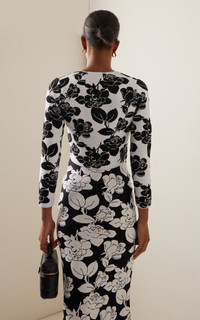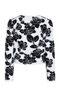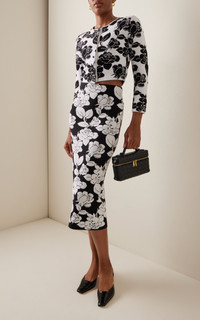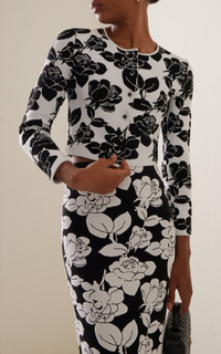Inspired by the “self-assured” Carolina Herrera woman, Wes Gordon continues to reinterpret—yet still honor—the house’s iconic codes reimagining signatures with fresh whimsy. This shrunken, cropped cardigan is crafted from intarsia-knit floral jacquard that pairs well with this skirt from the collection. PRODUCT DETAILS - Spring/Summer '25 - Button fastening through front - Composition: 80% Viscose, 12% Polyester, 5% Polyurethane Fibre, 3% Nylon, Polyamid - Dry clean only - Made in Italy SIZE & FIT - Designed for a slim fit