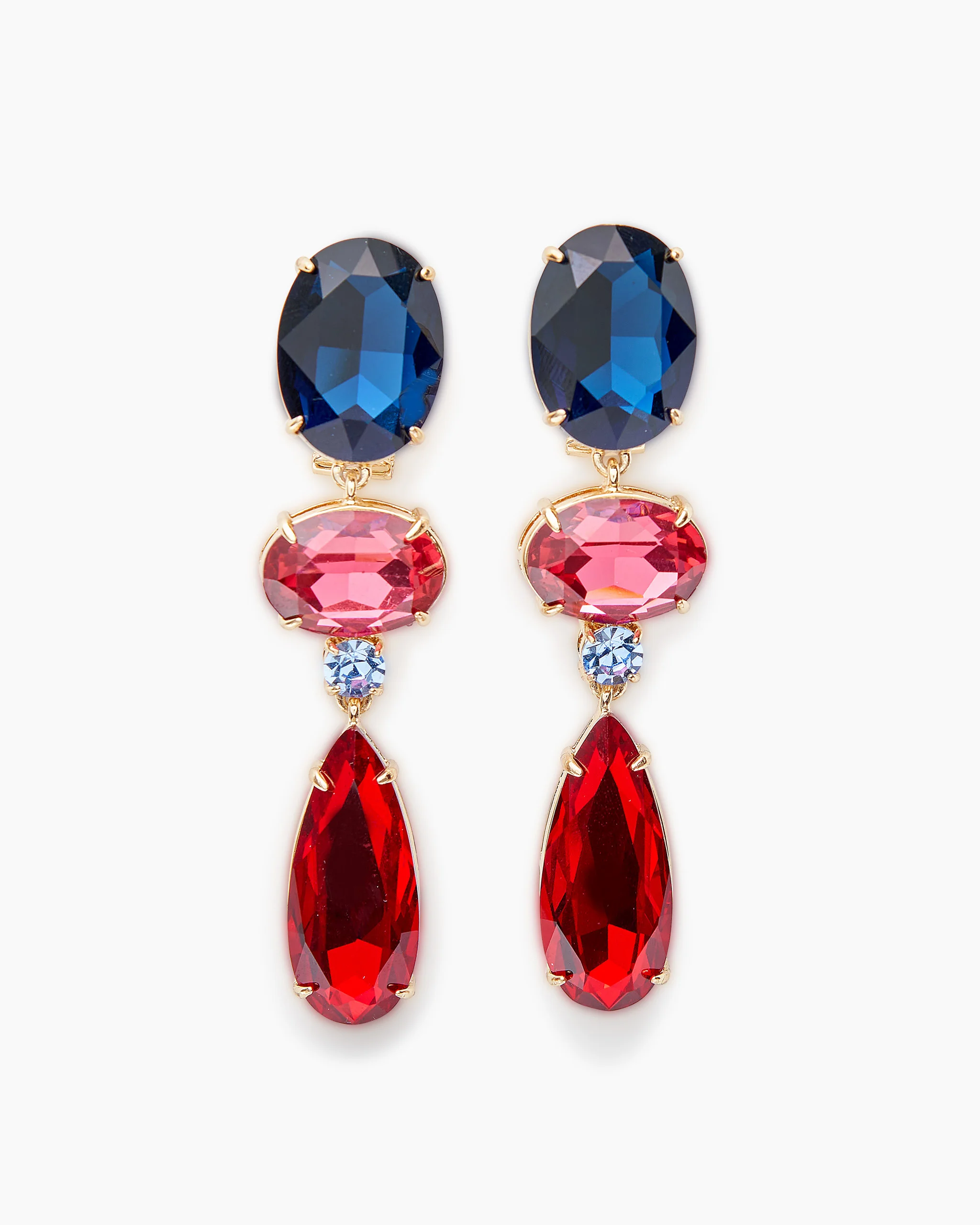 These dazzling drop earrings are crafted with faceted crystals that catch the light from every angle. SKU P2536N213MET COMPOSITION & CARE 65% Brass 33% Glass Stone 2% Zirconia Stone Washing Instructions Clean with a soft, dry cloth