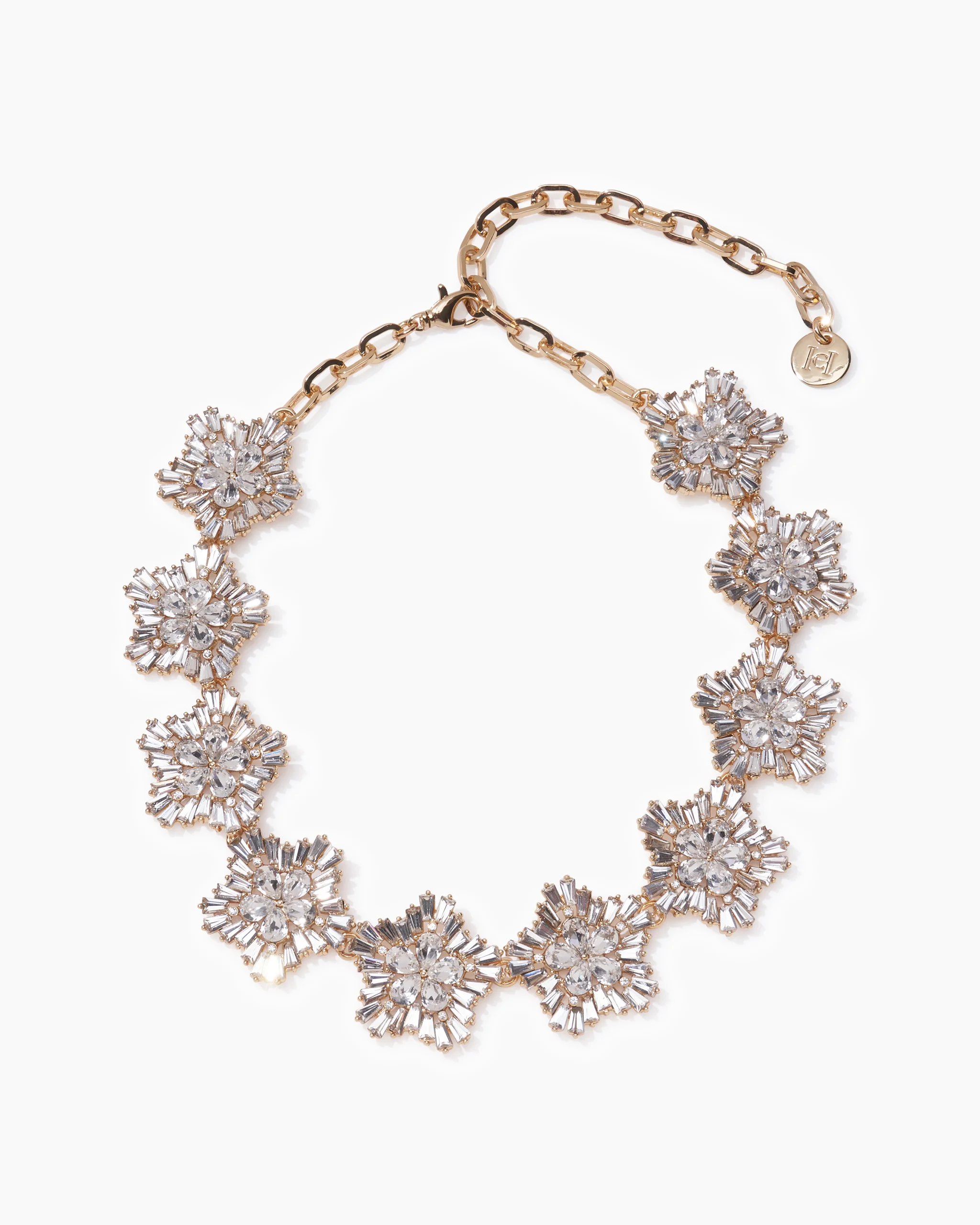 Inspired by the geometry of snowflakes, this statement necklace is composed of faceted crystal clusters. Its striking form will lend a touch of drama to any evening look. SKU C2636N401MET COMPOSITION & CARE 80% Brass 18% Epoxy 2% CZ Washing Instructions Spot clean only