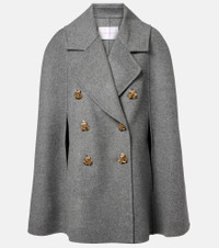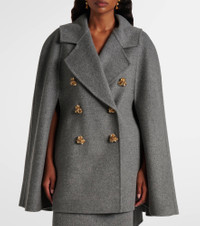 Carolina Herrera is celebrated for her elegant designs, exemplified by this cape. Crafted in Italy from melange virgin wool, the double-breasted piece features sophisticated gold-toned buttons, notched lapels, and slits for added allure. Product Details - Material: 100% virgin wool - Care instructions: dry clean - Made in Italy - Designer color name: Melange Grey - Item color: gray - Hardware color: gold - Lining: 100% polyester - Closure: double-breasted (six buttons) - Item number: P01091880 Size & Fit - True to size - Designed for a loose fit - Non-stretchy fabric - Falls below the hip - The model seen in the picture is 178cm-5'10" and wearing a size XS
