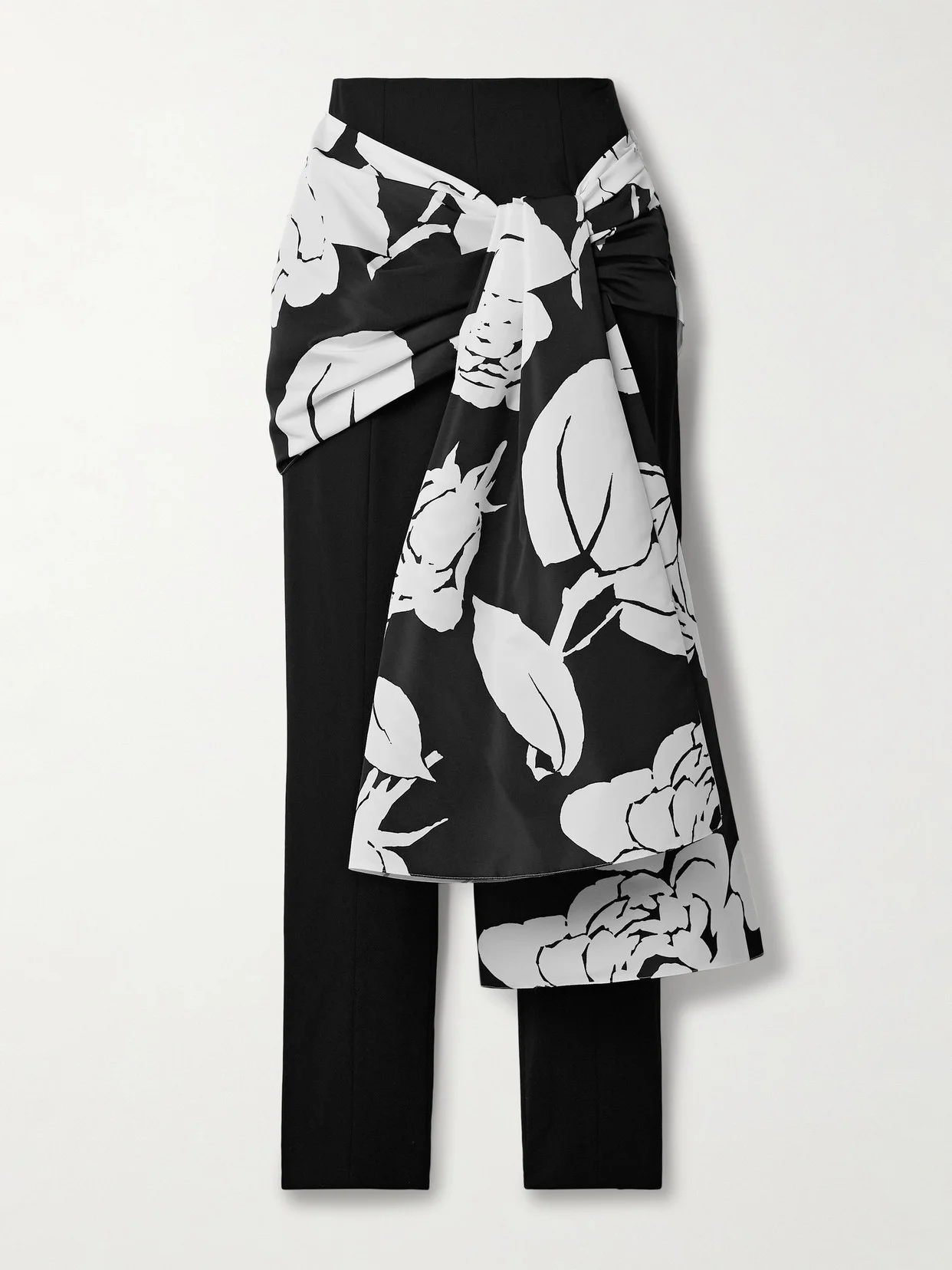 Draped Floral-print Faille And Crepe Slim-leg Pants