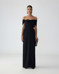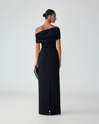An off-the-shoulder neckline and draped detailing at the bodice bring subtle allure to this crepe column gown. Off-the-shoulder neckline Back vent SKU F2511N738SFR SIZE & FIT Close-fitting column silhouette, maxi length Midweight stretch-crepe Model is 177cm/ 5’10” and is wearing a US 2 Bust: 33" Waist: 23" Hips: 35.5" COMPOSITION & CARE 92% Polyester, 8% Polyutherane Dry Clean Only Clean with a soft, dry cloth Made In Italy