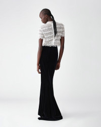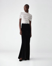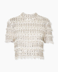 Raindrop crystals and rhinestones cascade down this mock-neck crop top, adding luxurious sparkle that catches the light with every turn. Fully lined Zip closure at the back SKU F2511E207NTU SIZE & FIT Slim fit Lightweight embellished tulle Model is 178cm/ 5’10” and is wearing a US 2 Bust: 31" Waist: 23" Hips: 33" COMPOSITION & CARE 100% Nylon Washing Instructions Dry Clean Only
