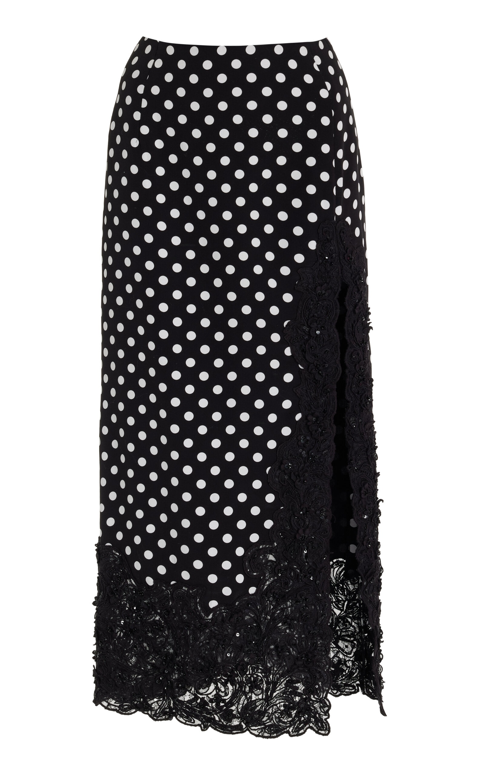 Inspired by the “self-assured” Carolina Herrera woman, Wes Gordon continues to reinterpret—yet still honor—the house’s iconic codes reimagining signatures with fresh whimsy. Crafted from silk and trimmed with lace, this midi pencil skirt fits with a sultry, high-cut slit. PRODUCT DETAILS - Spring/Summer '25 - Concealed zip fastening - Composition: 100% Silk - Dry clean only - Imported SIZE & FIT - Designed for a slim fit