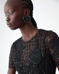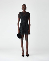 This stunning mini dress is crafted from sheer tulle in a gridded cage design, with hand-embroidered jet beads that grow in size as the skirt flares. Embroidered tulip motifs echo the season’s theme, creating a refined interplay of opacity and transparency. Runway style Lined Concealed zip closure at the back SKU F2511E558NTU SIZE & FIT Close fit, mini length Lightweight embellished tulle Model is 179cm/ 5’11” and is wearing a US 2 Bust: 29.5" Waist: 22" Hips: 34.5" COMPOSITION & CARE 100% Nylon Washing Instructions Dry Clean Only