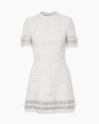 Embroidered raindrop crystals and rhinestones add luxurious sparkle to this mini dress, crafted from soft tweed in a shimmering melange of white and silver tones. Runway style Concealed zip closure at the back SKU F2511E530FTD SIZE & FIT Loose A-line fit Midweight tweed Model is 178cm/ 5’10” and is wearing a US 2 Bust: 29" Waist: 23" Hips: 34.5" COMPOSITION & CARE 28% Nylon, 21% Polyester, 20% Cotton, 14% Virgin Wool, 10% Viscose, 7% Acrylic Washing Instructions Dry Clean Only Made in Italy