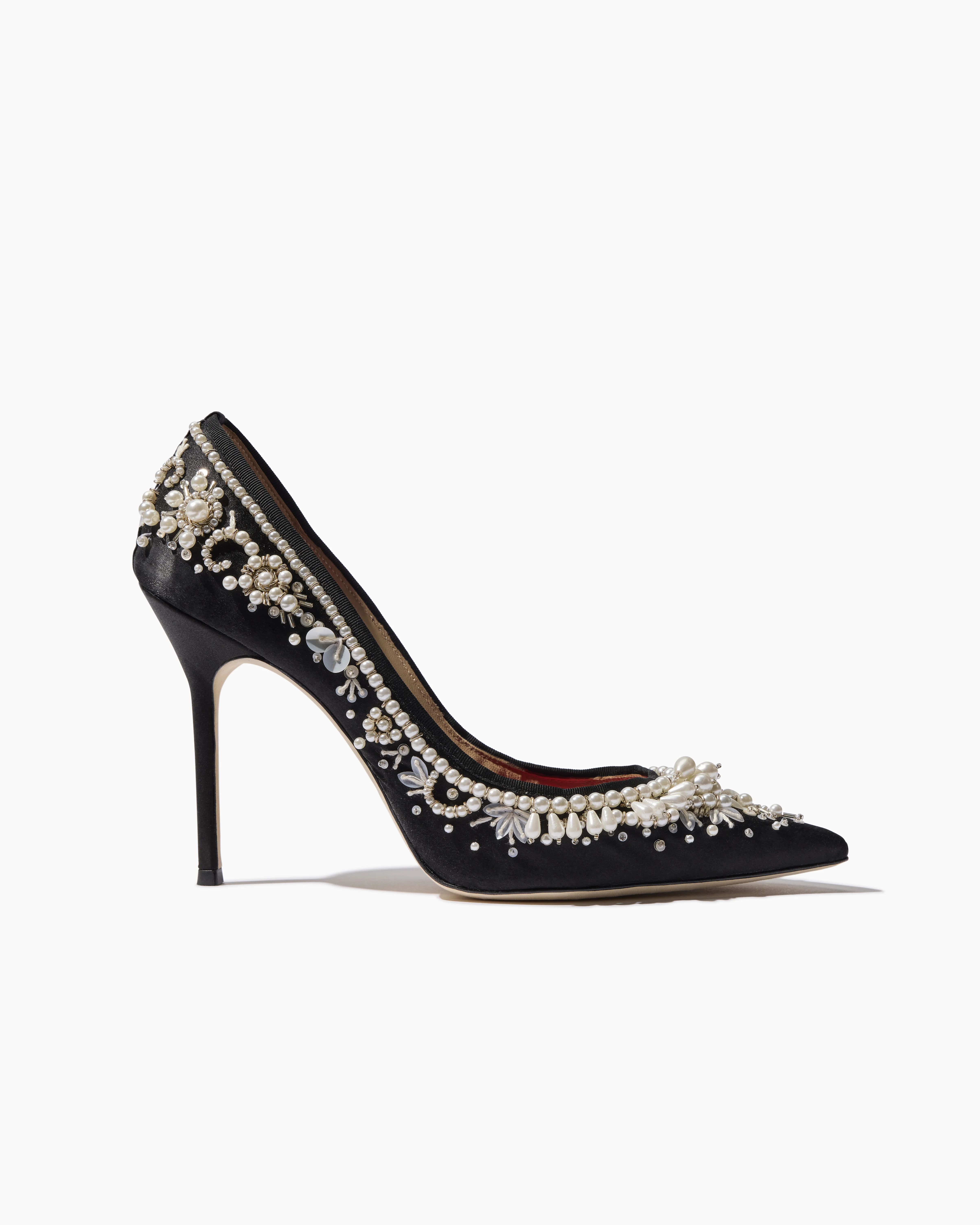 These eye-catching pumps are intricately embroidered with pearls, beads and metallic sequins. Washing Instructions Spot Clean Made in SPAIN SKU F2431E505STN