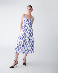 Crafted of stretch-cotton, this flared midi dress showcases a beautiful floral block print. SKU E2511N525FMP SIZE & FIT Close-fitting up to the thigh Midweight stretchy cotton COMPOSITION & CARE 97% Cotton 3% Elastane Washing Instructions Dry Clean Only Made in Italy
